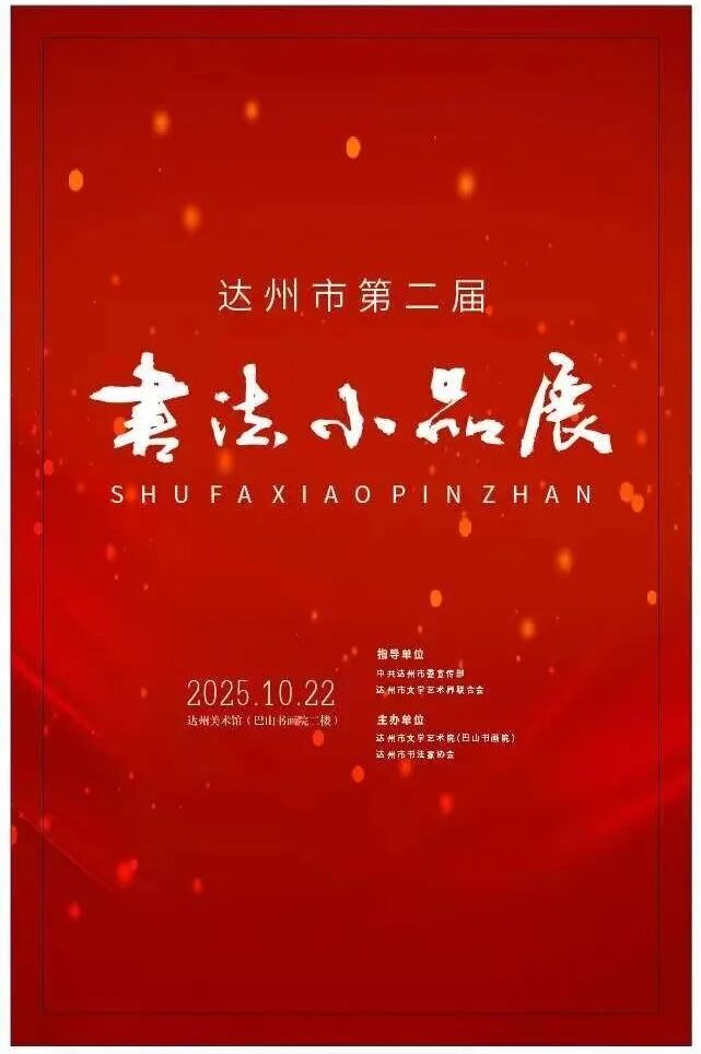 10月22日,达州市第二届书法小品展在达州美术馆开展。本次展览由达州市委宣传部、市文联指导,市文学艺术院(巴山书画院)、市书法家协会联合主办。